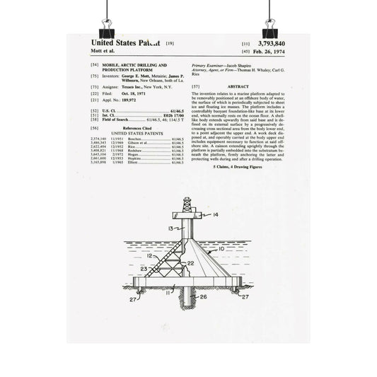 Patent Case File No. 3,793,840, Mobile Arctic Drilling and Production Platform, Inventor(s)- George E. Mott and James P. Wilbourn. - DPLA - 8f260bf2cd8926afbf4da017454f39b3 (page 6) High Quality Matte Wall Art Poster for Home, Office, Classroom