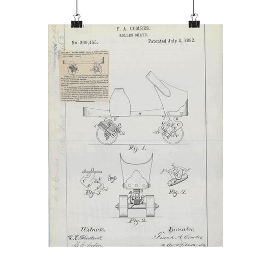 Patent drawing - for F. A. Combes' Roller Skate Public domain image High Quality Matte Wall Art Poster for Home, Office, Classroom