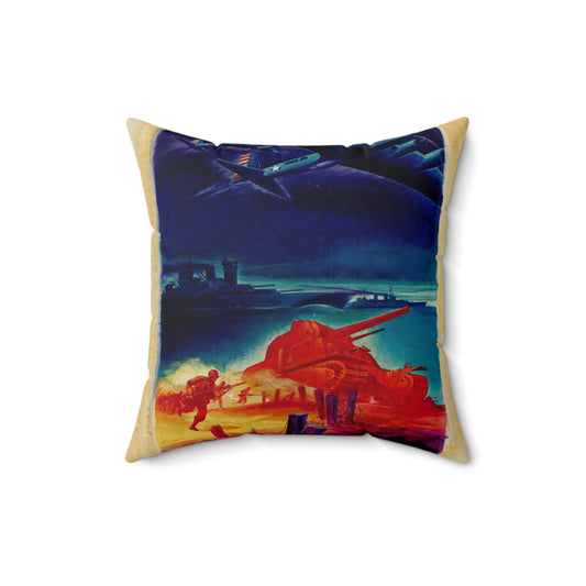 [Infantry, tanks, ships, airplanes attacking] [R.G.] Decorative Accent Square Pillow