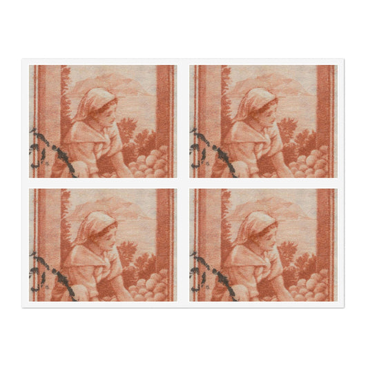 Frimärke ur Gösta Bodmans filatelistiska motivsamling, påbörjad 1950.Frimärke från Italien, 1950. Motiv av apelsinskörd på Sicilien. Laminated UV Protective Vinyl Stickers