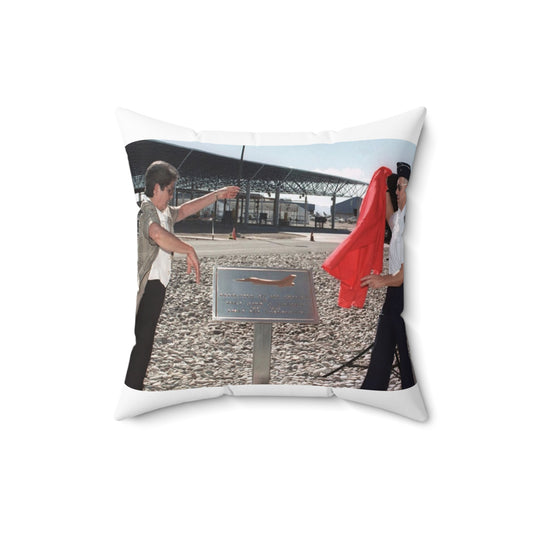 In memory of US Air Force MASTER Sergeant Jamie Solomon, US Air Force Brigadier General Mensching and Mrs. Solomon unveil the dedication of the new POL facilities in Tucson, Arizona Decorative Accent Square Pillow