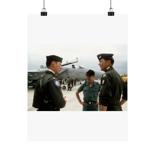 Upon his arrival, LTC Tom Barber (left), is greeted by Exercise Cope North '81-3 directors, COL George Peacock and Japanese Air SelF Defense Force COL V. Nomura High Quality Matte Wall Art Poster for Home, Office, Classroom