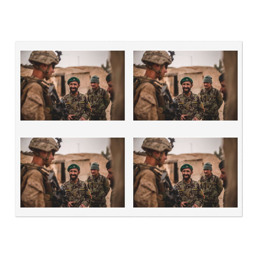 A U.S. Marine with Task Force Southwest (TFSW) converses Laminated UV Protective Vinyl Stickers