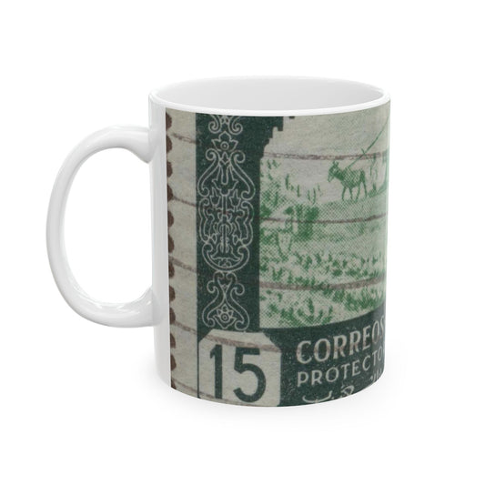 Frimärke ur Gösta Bodmans filatelistiska motivsamling, påbörjad 1950.Frimärke från Spanska Marocko, 1944. Motiv av planteringsarbete , köksträdgård. Beautiful Novelty Ceramic Coffee Mug 11oz