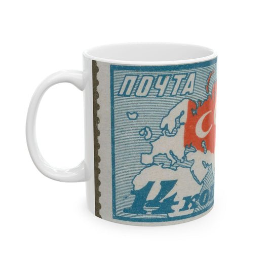 Frimärke ur Gösta Bodmans filatelistiska motivsamling, påbörjad 1950.Frimärke från Ryssland 1927. Motiv av karta över Sovjetuionen, Europa och Asien. "10 årsminne om Oktoberrevulutionen 1917". Beautiful Novelty Ceramic Coffee Mug 11oz