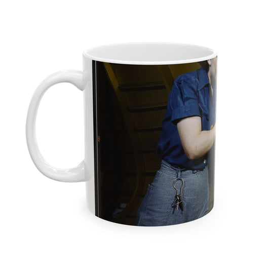 Operating a hand drill at Vultee-Nashville, woman is working on a "Vengeance" dive bomber, Tennessee Beautiful Novelty Ceramic Coffee Mug 11oz