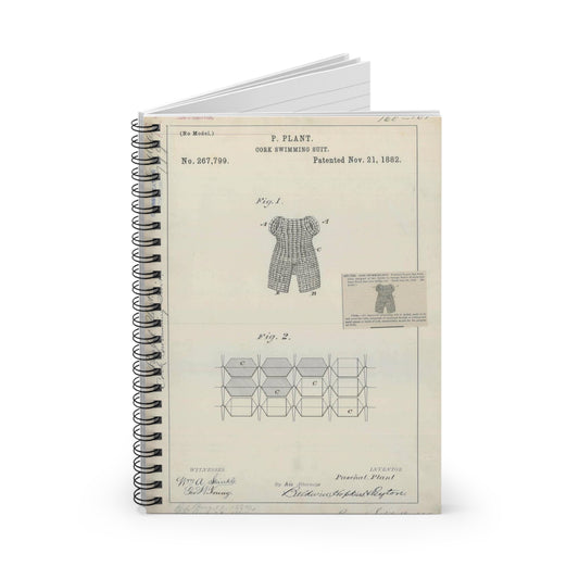 Patent drawing - for P. Plant's Cork Swimming Suit Public domain image Spiral Bound Ruled Notebook with Printed Cover