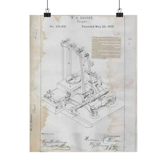 Patent drawing - for W. H. Broden's Target Public domain image High Quality Matte Wall Art Poster for Home, Office, Classroom