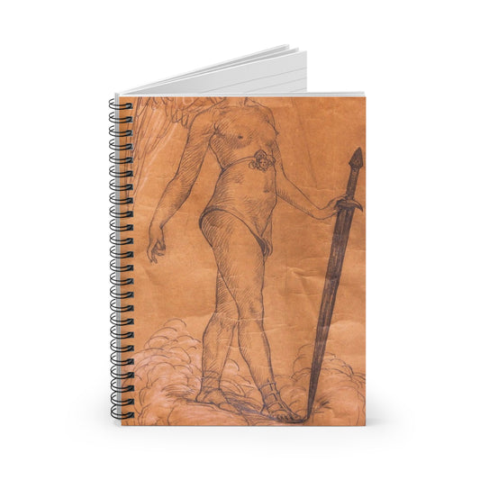 A drawing of an angel holding a sword. Woman breasts sword, beauty fashion. Spiral Bound Ruled Notebook with Printed Cover
