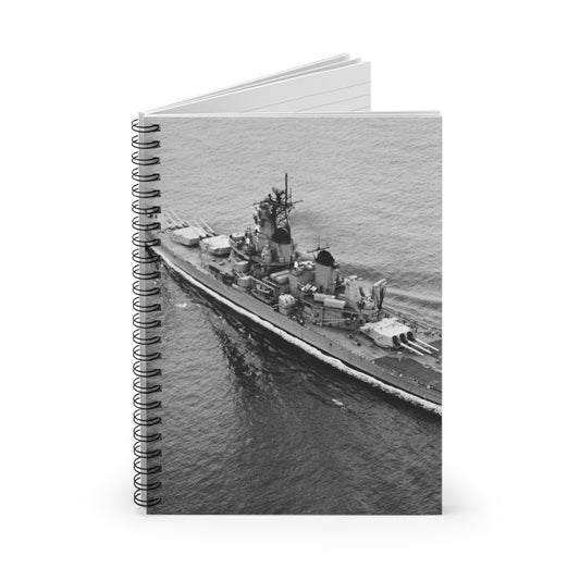 An elevated port quarter view of the battleship USS IOWA (BB 61) underway during sea trials Spiral Bound Ruled Notebook with Printed Cover