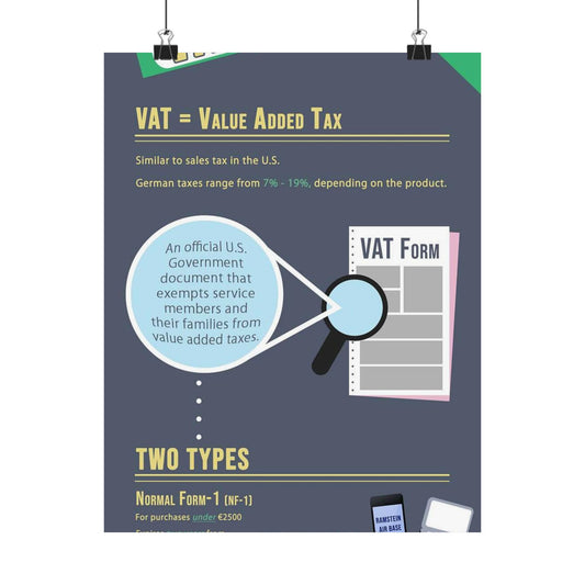 What is VAT? - A poster with a lot of different things on it High Quality Matte Wall Art Poster for Home, Office, Classroom