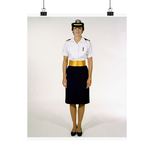 Uniform: Tropical dinner dress blue, female Navy officers High Quality Matte Wall Art Poster for Home, Office, Classroom