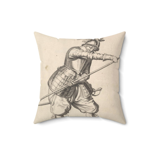 A soldier sliding his right hand along the training-pike, from the Lansquenets series, plate 22, in Wapenhandelinghe van Roers Musquetten Ende Spiessen (The Exercise of Arms) Decorative Accent Square Pillow