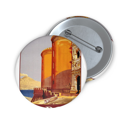 Napoli. Vintage Travel Poster., Italy Pin Buttons with Crisp Design
