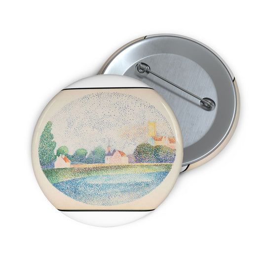 Morning on the Marne at Meaux - Drawing. Public domain image. Pin Buttons with Crisp Design