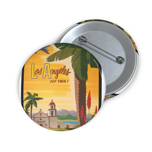 Los Angeles - fly TWA! Bob Smith Pin Buttons with Crisp Design