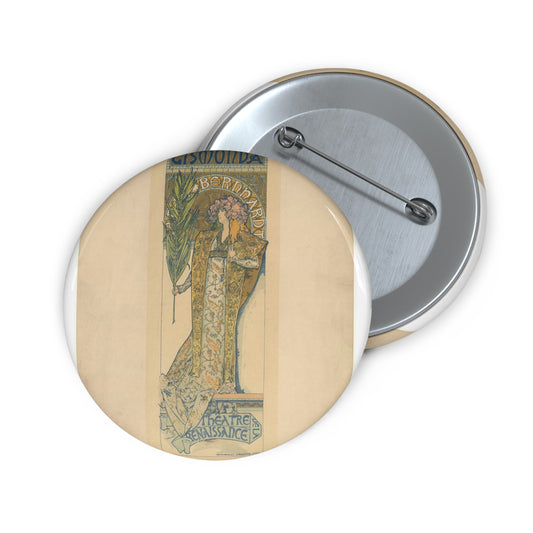 Alphonse Mucha - Poster for Victorien Sardou's Gismonda starring Sarah Bernhardt - Original Pin Buttons with Crisp Design