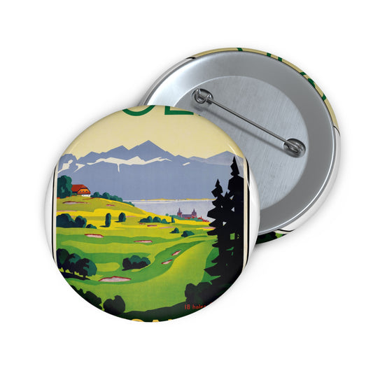 Poster - Golf. Lausanne - Public domain lithograph Pin Buttons with Crisp Design