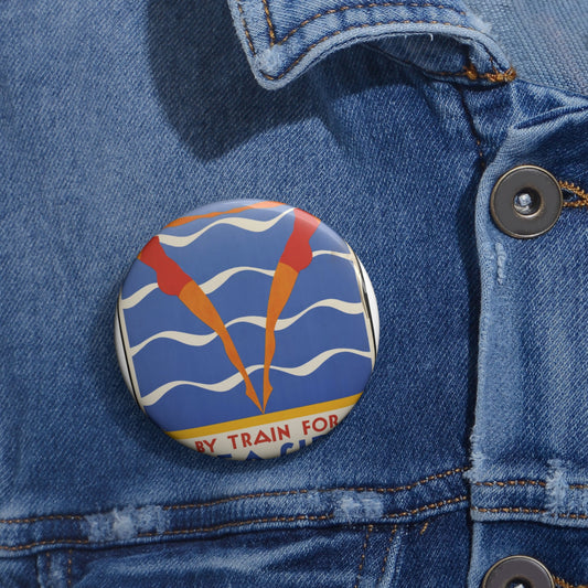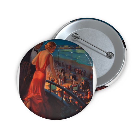 Detail, Atlantic City—America's Great All Year Resort, Pennsylvania Railroad, painting by Edward Mason Eggleston (cropped) Pin Buttons with Crisp Design