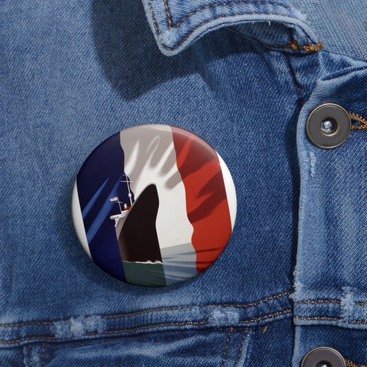 G.G. Transatlatique. Vintage Travel Poster. Pin Buttons with Crisp Design