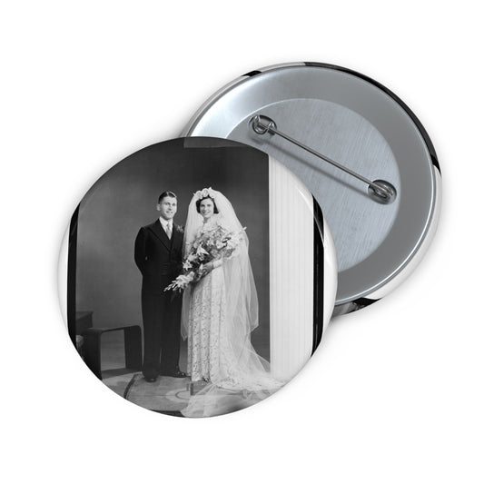 Atkins-Plummer wedding: the bride and groom Pin Buttons with Crisp Design