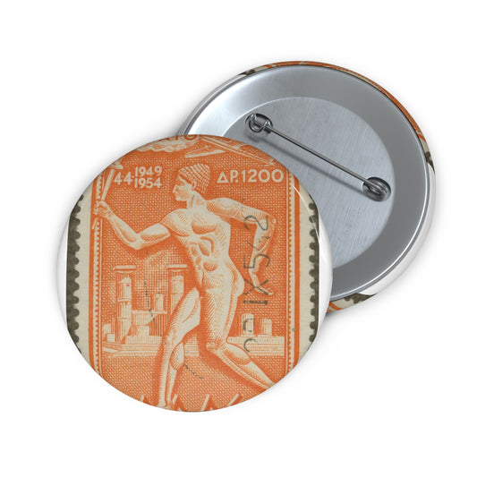 Frimärke ur Gösta Bodmans filatelistiska motivsamling, påbörjad 1950.Frimärke från Grekland, 1954. Motiv av symbol för upplysning och framåtskridande. "N. A. T. O. fem år 4.4.1949 -4.4.1954". Pin Buttons with Crisp Design