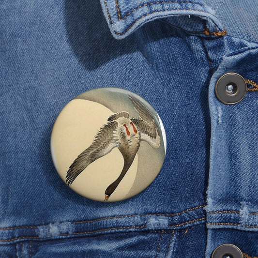 Koson - flying-white-fronted-goose-seen-from-underneath-in-front-of-the-moon Pin Buttons with Crisp Design