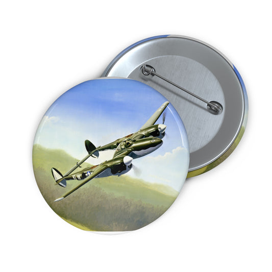 Artwork: "P-38 Lightning Artist: Dick Kramer (US Air Force Art Collection) Pin Buttons with Crisp Design