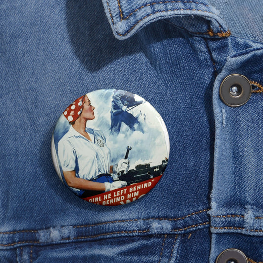 "The girl he left behind" is still behind him--She's a WOW Adolph Treidler Pin Buttons with Crisp Design