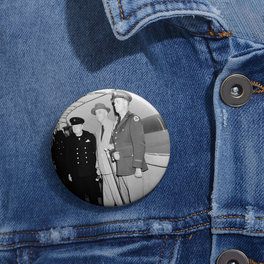 Winston Churchill with Franklin D. Roosevelt on board USS Augusta (CA-31) on 9 August 1941 (NH 67201) Pin Buttons with Crisp Design
