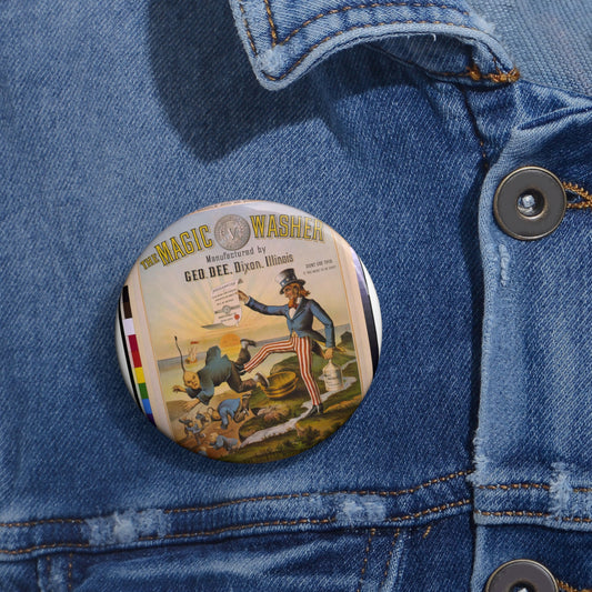 The magic washer, manufactured by George Dee, Dixon, Illinois. The Chinese must go Pin Buttons with Crisp Design