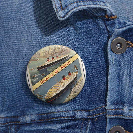 Cunard Line. Vintage Travel Posters, 1920s-1930s Pin Buttons with Crisp Design