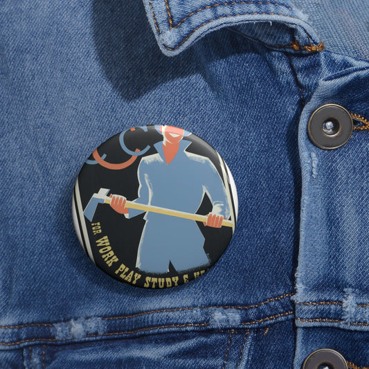 A young man's opportunity for work, play, study & health / Bender ; made by Illinois WPA Art Project, Chicago. Pin Buttons with Crisp Design