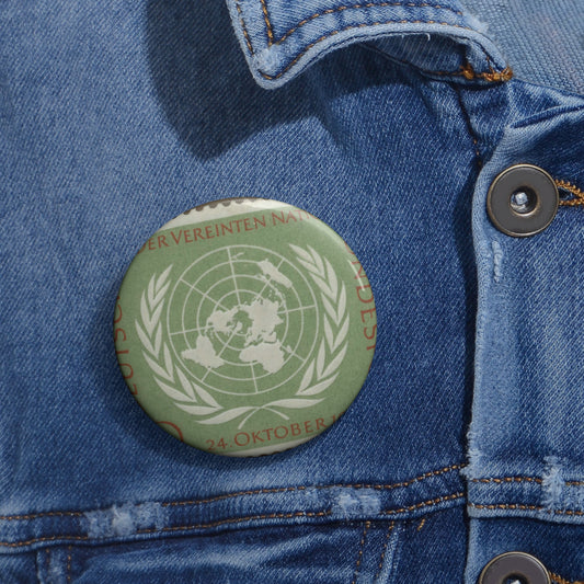 Frimärke ur Gösta Bodmans filatelistiska motivsamling, påbörjad 1950.Frimärke från Västtyskland, 1955. Motiv av världskarta. "F. N. :s dag 24 oktober 1955". Pin Buttons with Crisp Design