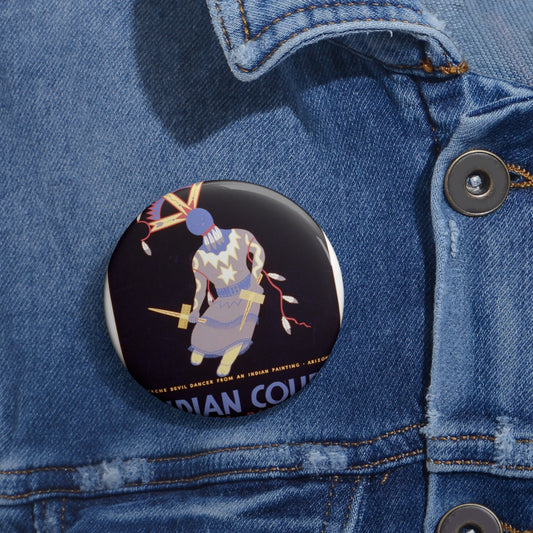 Indian court, Federal Building, Golden Gate International Exposition, San Francisco, 1939 Apache devil dancer from an Indian painting, Arizona / / Siegriest. Pin Buttons with Crisp Design
