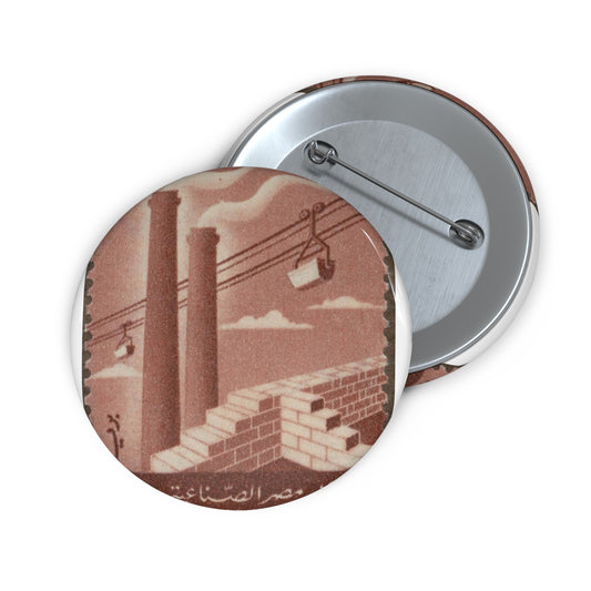 Frimärke ur Gösta Bodmans filatelistiska motivsamling, påbörjad 1950.Frimärke från Förenade Arabstaterna, 1958. Motiv av cement- och byggindustri i Egypten. Pin Buttons with Crisp Design