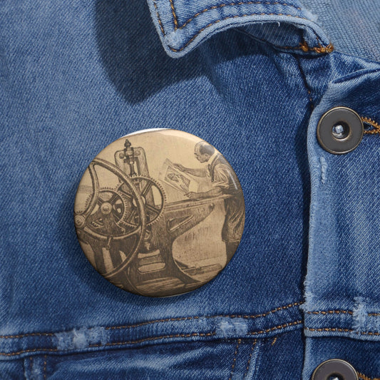 Lilien Printing press - Public domain portrait print Pin Buttons with Crisp Design