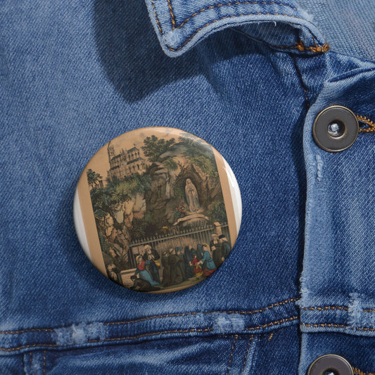 Pilgrims at the Shrine of Our Lady of Lourdes Pin Buttons with Crisp Design