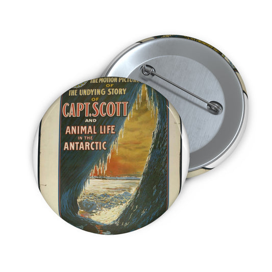 The Gaumont Co. L'T'D. London presents the motion picture records of the undying story of Capt. Scott and animal life in the Antarctic / The Morgan Lith. Co., Cleveland, O. Pin Buttons with Crisp Design