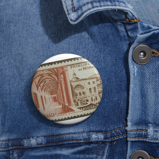 Frimärke ur Gösta Bodmans filatelistiska motivsamling, påbörjad 1950.Frimärke från Monaco, 1952. Motiv av "Herculesgalleriet. Pin Buttons with Crisp Design
