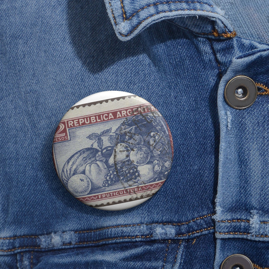 Frimärke ur Gösta Bodmans filatelistiska motivsamling, påbörjad 1950.Frimärke från Argentina, 1935. Motiv av diverse subtrpiska frukter. Pin Buttons with Crisp Design