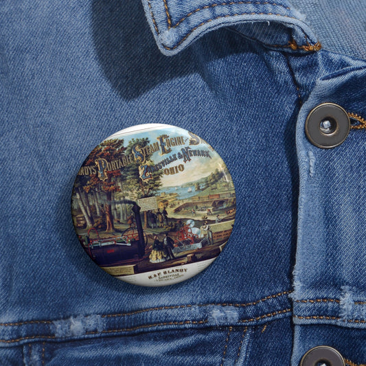 Blandy's portable steam engine and saw mills, Zanesville & Newark Ohio Pin Buttons with Crisp Design