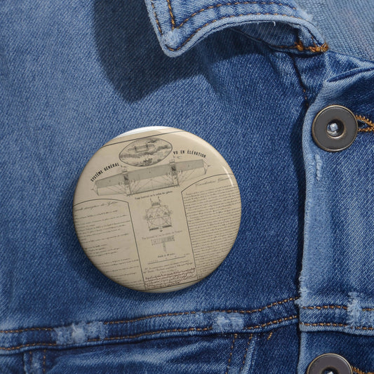 Patent drawing - Aérostat dirigeable système Vaussin Chardanne, brevet ... Nouveaux procédés de direction aérienne présenté à lʹInstitut de France, 1852 Public domain image Pin Buttons with Crisp Design