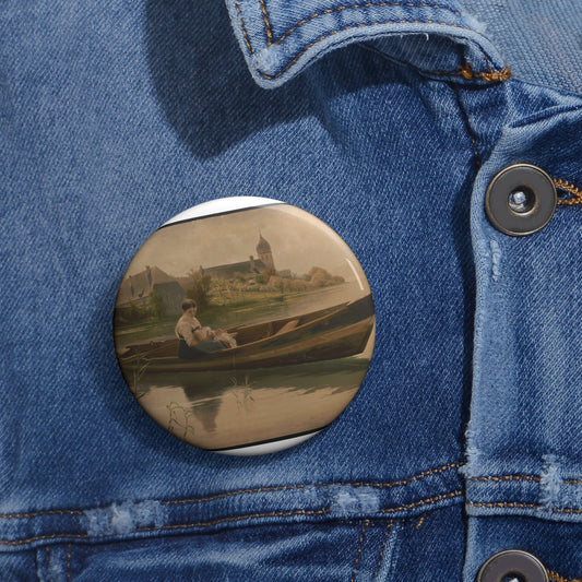 Woman holding infant in rowboat Pin Buttons with Crisp Design