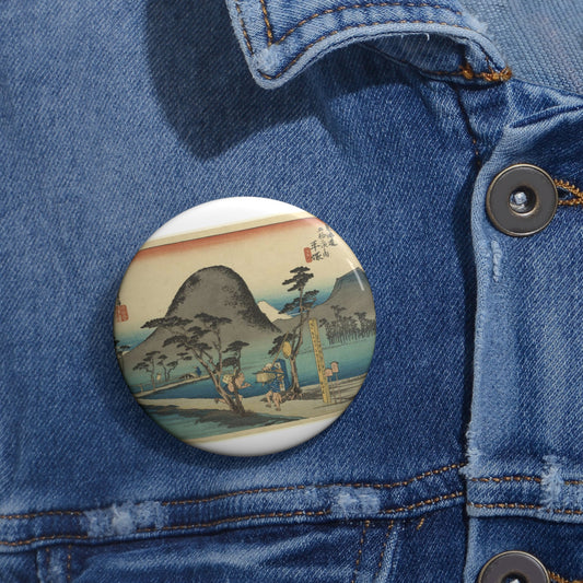 Utagawa Hiroshige - Hiratsuka, Nawatemichi. Watercolor painting. Pin Buttons with Crisp Design