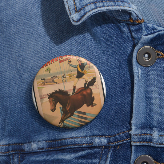 Die Barnum & Bailey groesste schaustellung der welt Reiter-wettrennen. Der Springende jockey.. Pin Buttons with Crisp Design