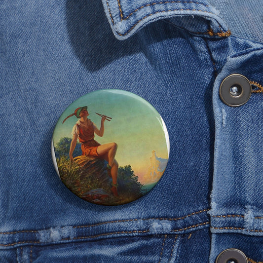 “Pipes of Pan”, print from painting by Edward Mason Eggleston, 1930 Pin Buttons with Crisp Design