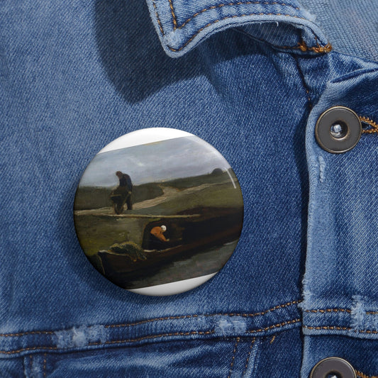 Peat Boat with Two Figures Pin Buttons with Crisp Design