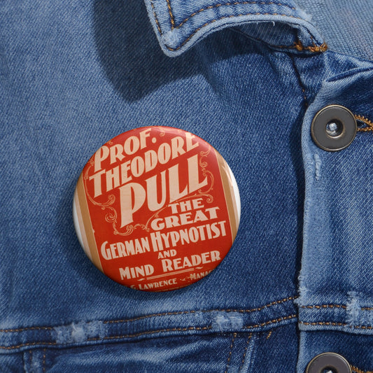 Prof. Theodore Pull, the great German hypnotist and mind reader Pin Buttons with Crisp Design