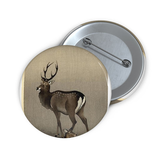 Koson - stag-and-recumbent-doe, Ohara Koson Pin Buttons with Crisp Design